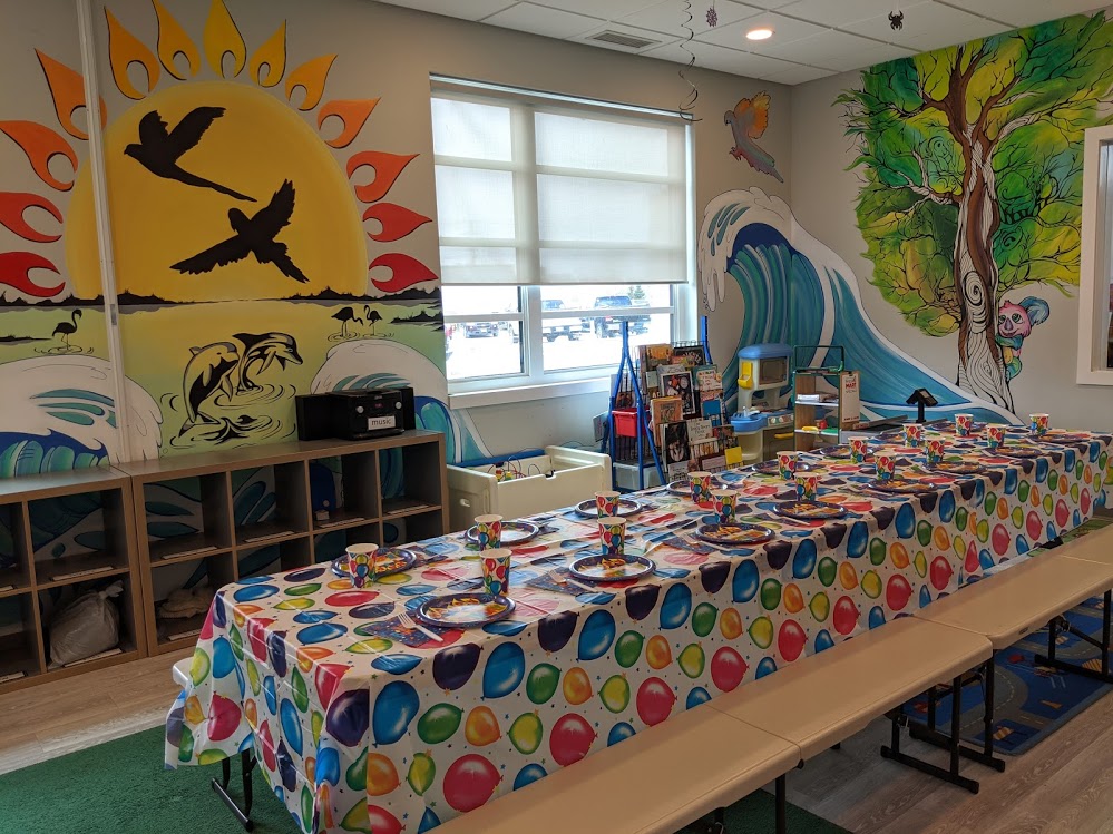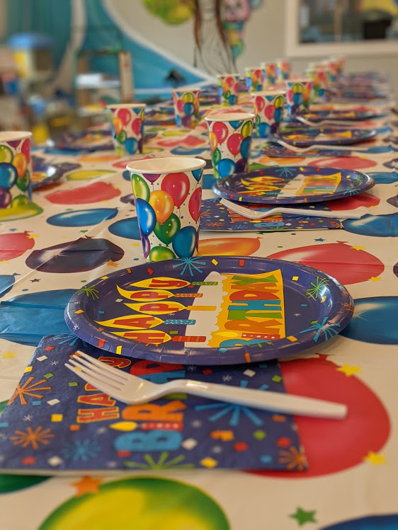 Parents are welcome to bring their own food & drinks. Our party room has a fridge & freezer, microwave, and oven available to use. The room can comfortably fit around 20-25 people.