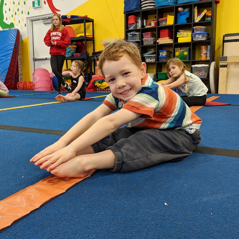 (Ages 3-5) 1 hour preschool gymnastics class that incorporates pompoms & dance movement into the warm-up. A fun, action packed gymnastics class with all gymnastics apparatuses covered. GymKyds takes great pride in the quality of our preschool programs. In this class children are having fun, developing basic gymnastics, cheer, & physical literacy skills, and making new friends!