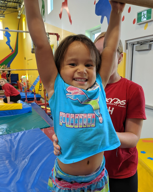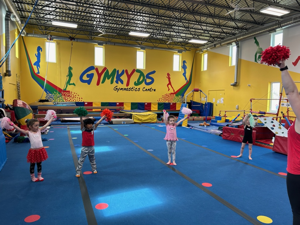 (Ages 3-5) 1 hour preschool-aged class that incorporates 50% dance & 50% gymnastics. This class incorporates creative movement, dance, and rhythm activities along with introduction to gymnastics fundamentals on the floor, bars, beam, and vault. A fun class for kids who love to move! GymKyds takes great pride in the quality of our preschool programs. In this class children are having fun, developing basic gymnastics, dance, & physical literacy skills, and making new friends!